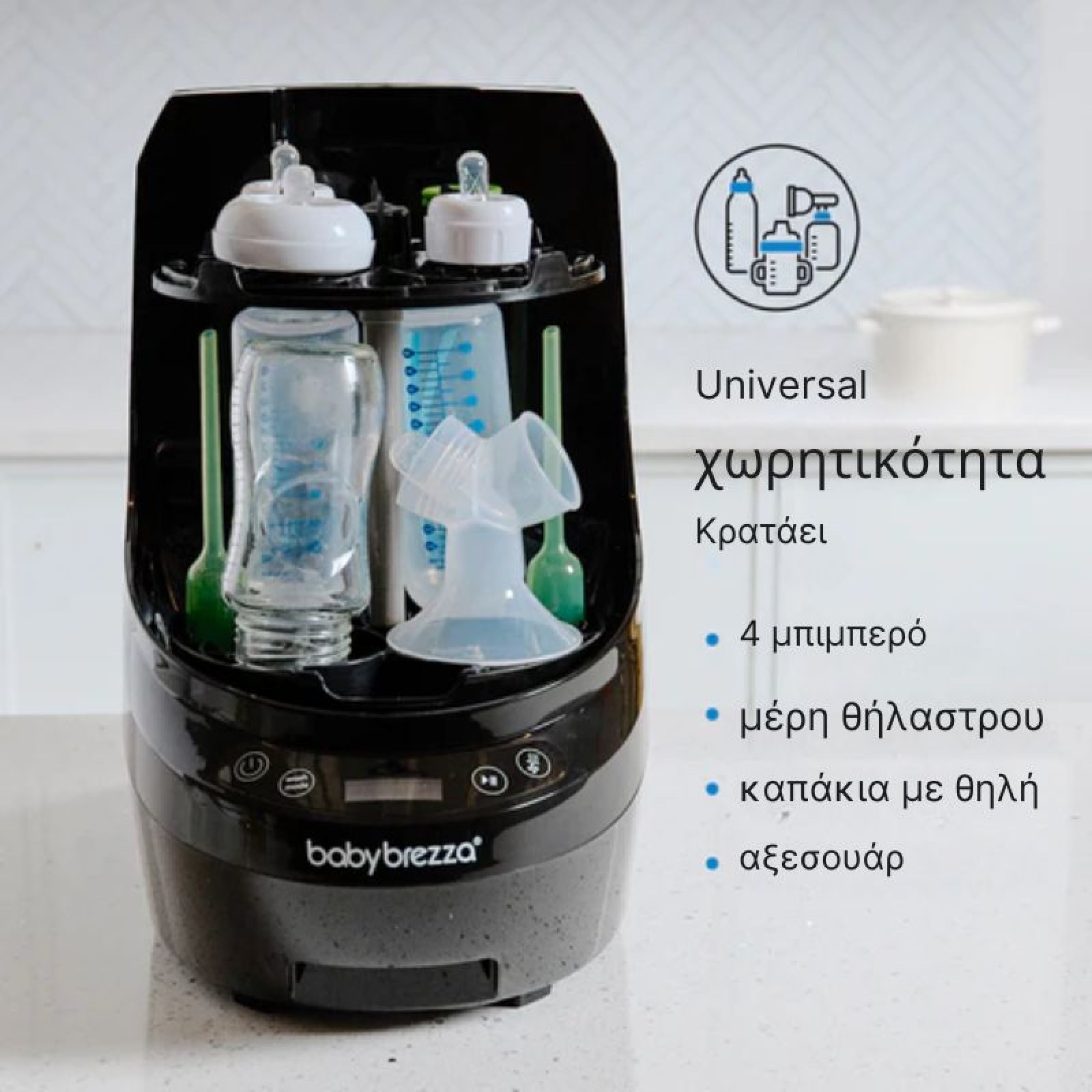 Η Baby Brezza ειδικεύεται σε καινοτόμες συσκευές που απλοποιούν τη βρεφική διατροφή και την καθημερινότητα των γονιών. Από έξυπνους παρασκευαστές μπιμπερό και βρεφικών γευμάτων μέχρι αποστειρωτές και στεγνωτήρια μπιμπερό, τα προϊόντα της προσφέρουν άνεση, ταχύτητα και ασφάλεια. Με σύγχρονη τεχνολογία και πρακτικό σχεδιασμό, η Baby Brezza είναι ο ιδανικός σύμμαχος για κάθε οικογένεια.