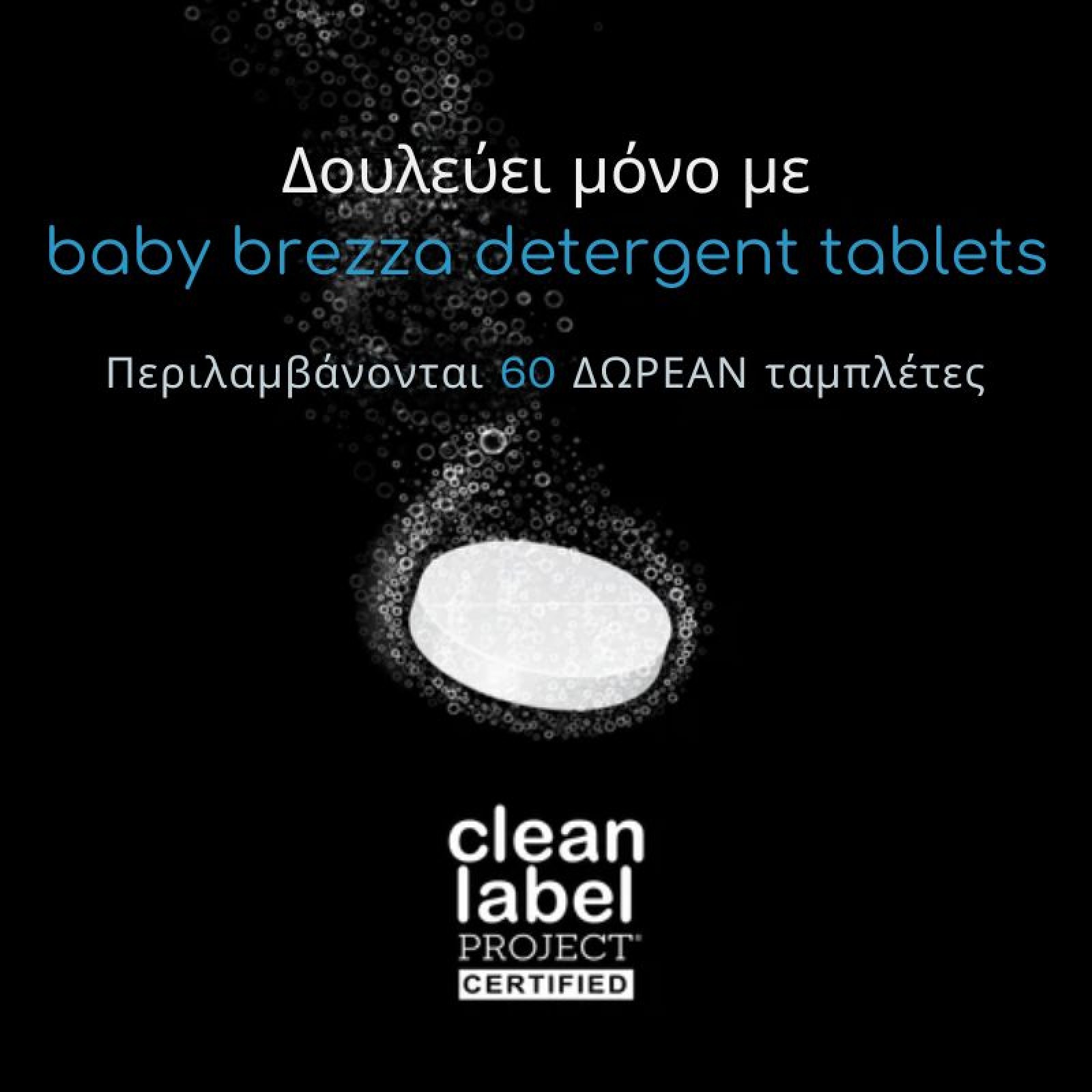 Λειτουργεί μόνο με ταμπλέτες απορρυπαντικού Baby Brezza που είναι ασφαλείς για τα μωρά
