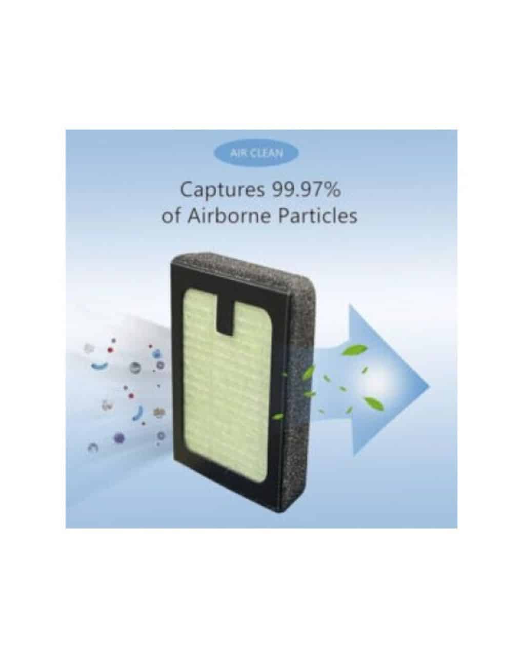 Το φίλτρο HEPA έχει τη δυνατότητα να συγκρατεί σχεδόν ολόκληρο το φάσμα των αιωρούμενων σωματιδίων, επιτυγχάνοντας αποτελεσματικότητα αφαίρεσης 99,9% για σωματίδια τόσο μικρά όσο 0,3 μικρά.