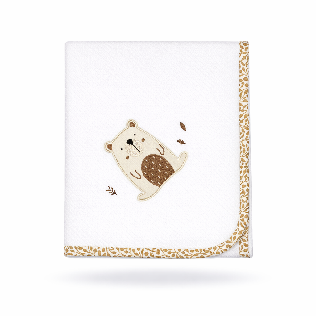 Aπαλή και μαλακή καλοκαιρινή/φθινοπωρινή πάνα για να τυλίξετε και να κρατήσετε το μωρό αγκαλιά. Είναι απαραίτητη τους πρώτους 6 μήνες του μωρού. Μπορεί να χρησιμοποιηθεί σαν κουβερτάκι στο λίκνο, στο καροτσάκι ή στην καλαθούνα όλο το καλοκαίρι. Έχει κέντημα στη μία πλευρά και ρέλι γύρω γύρω. Είναι 100% βαμβακερή και πλένεται στο πλυντήριο στους 40˚C. Η διάσταση της είναι 80cm x 80cm.
