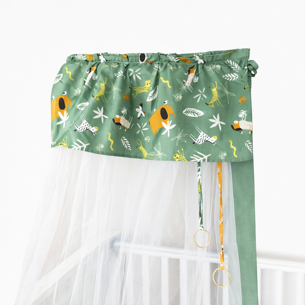Η κουνουπιέρα από τη σειρά Elephant δημιουργεί ένα σκηνικό γεμάτο φαντασία και περιπέτεια, στο βρεφικό δωμάτιο! Μπορεί να συνδυαστεί με το πάπλωμα και την πάντα από την ίδια σειρά για ένα μοναδικό αποτέλεσμα. Πλένεται στο χέρι και δεν θέλει σιδέρωμα. Το ύψος της είναι 185cm και το φάρδος 520cm.