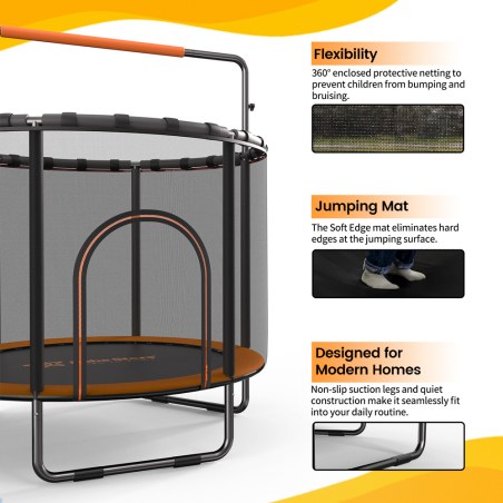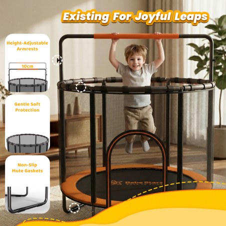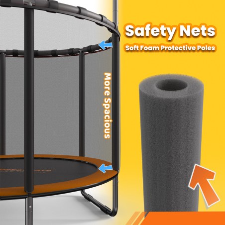 Το προστατευτικό δίχτυ εξασφαλίζει την απαιτούμενη ασφάλεια κατά τη χρήση. Το άνοιγμα για είσοδο στο τραμπολίνο ασφαλίζεται με φερμουάρ έτσι ώστε το παιδί να παραμείνει ασφαλή κατά την διάρκεια του παιχνιδιού.