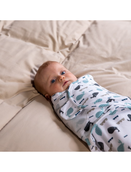 Home » Κατάστημα » Δωμάτιο » Βρεφικό δωμάτιο » Προίκα Μωρού » Υπνόσακοι » Bo Jungle Βαμβακερή κουβέρτα φασκιώματος 0-4 μηνών Whales