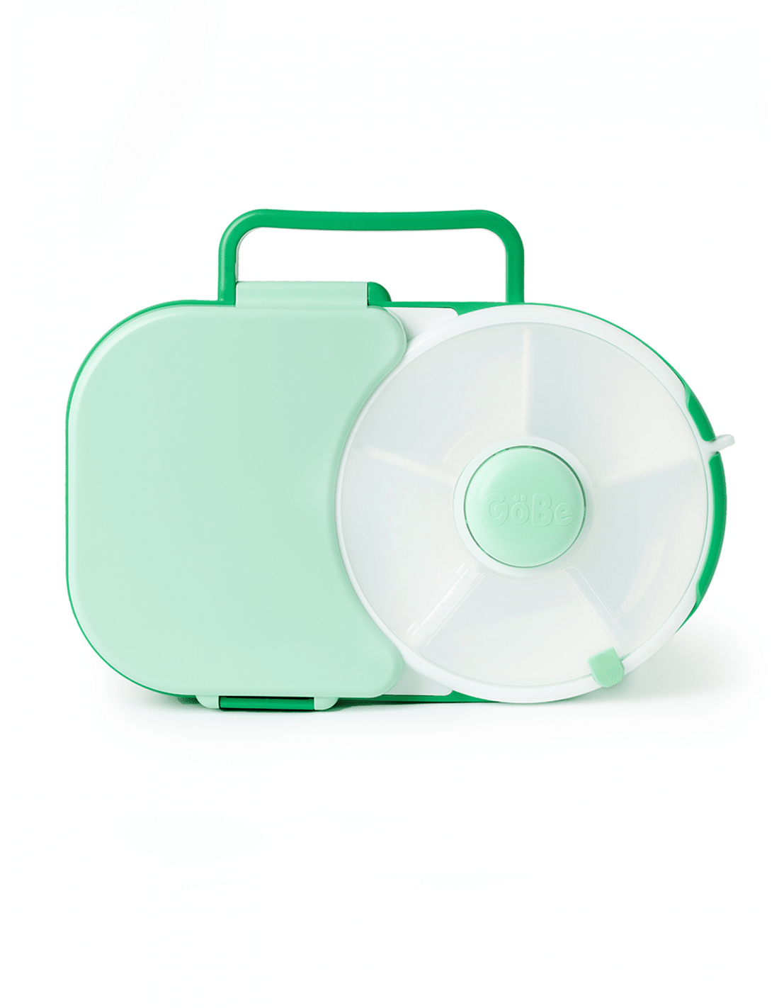 Το ολοκαίνουργιό μας σχέδιο ήρθε για να σας λύσει τα χέρια – ας καλωσορίσουμε λοιπόν το GoBe Lunchbox! Ανεξάρτητα από τις πολυάσχολες μέρες, τις εξόδους ή τις εξωτερικές σας περιπέτειες με το μικρό σας, ο πρωτοποριακός σχεδιασμός του GoBe Lunchbox θα κάνει την ώρα του φαγητού μια βόλτα στο πάρκο όπου και αν βρίσκεστε. Με μια λαβή μεταφοράς, μια κλειστή θήκη (που χωράει τουλάχιστον ένα ολόκληρο σάντουιτς) και μια θήκη που περιλαμβάνει ένα από τα Original Snack Spinner μας, το Lunchbox κρατά τα πάντα μαζί οργανωμένα σε μια όμορφα βολική συσκευασία. Δεν πρέπει να παραλείψουμε ότι η απολαυστικά προσαρμόσιμη σχεδίαση του Lunchbox σας επιτρέπει να το συνδυάσετε και να το ταιριάξετε χρωματικά με οποιοδήποτε Original Snack Spinner που διαθέτετε ήδη (ή θέλετε να αποκτήσετε μελλοντικά)!