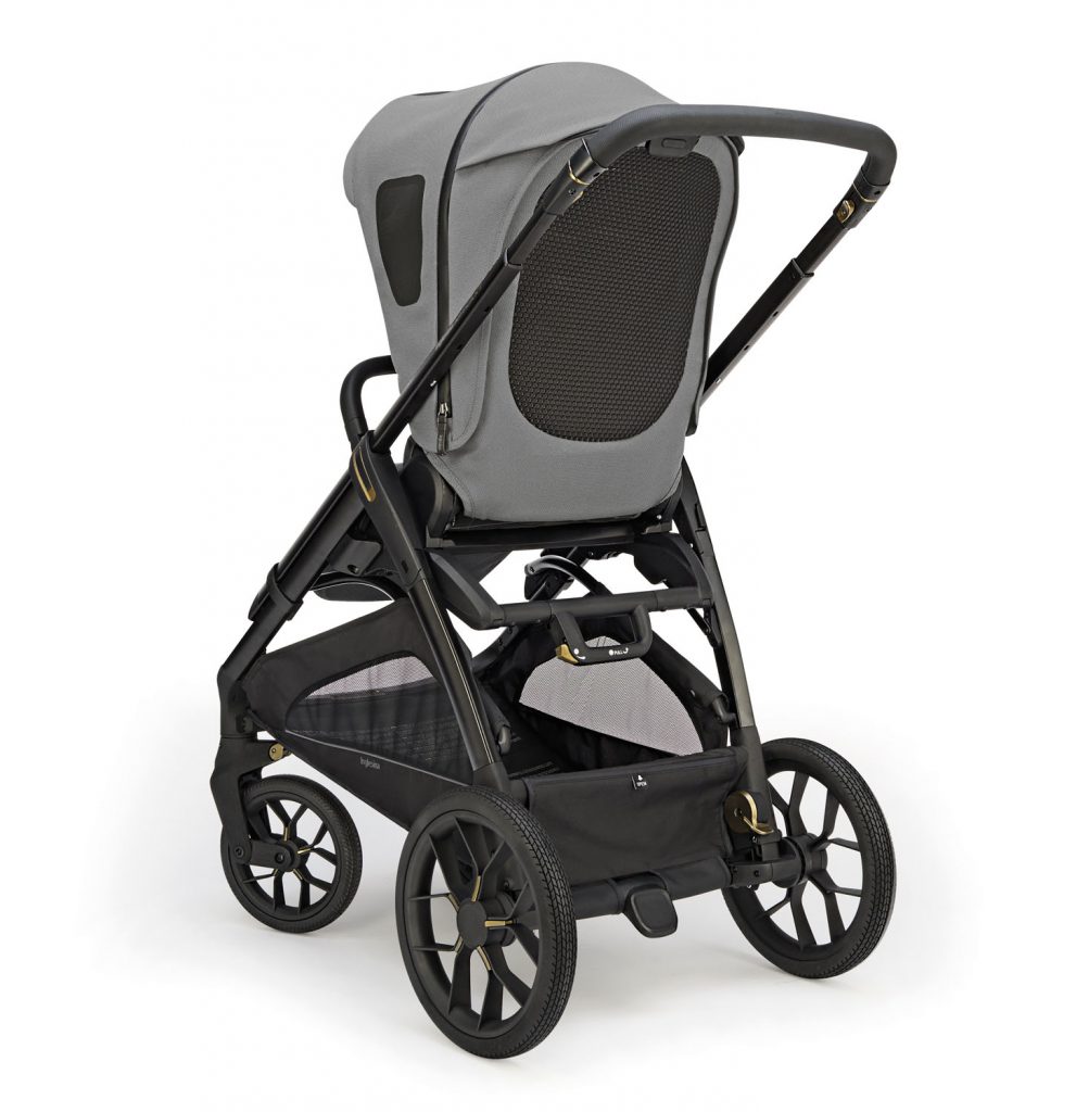 Το σχήμα της πλάτης του καροτσιού έχει σχεδιαστεί με ιδιαίτερη προσοχή στην υγεία και την άνεση του παιδιού. Για να διασφαλιστεί η σωστή στάση του σώματος, η πλάτη έχει επένδυση με διπλό στρώμα τρισδιάστατου διχτυωτού υφάσματος, που προσφέρει εξαιρετική διεύλεση του αέρα και υψηλή σταθερότητα. Αυτή η λύση επιτρέπει στο παιδί να διατηρεί μια άνετη και ασφαλή στάση σώματος κατά τη διάρκεια της βόλτας.
