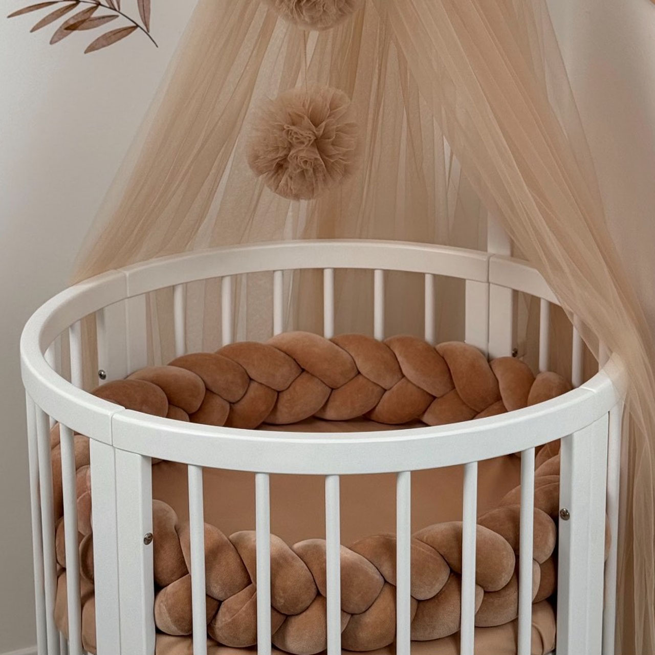 Κομψή, απαλή, ευχάριστη στην αφή προστασία, δεν περιορίζει την ροι του αέρα στην κούνια, άνετη, δεν καταλαμβάνει πολύ χώρο. Κατάλληλο για ορθογώνια, οβάλ και στρογγυλά κρεβάτια. Πριν γεννηθεί το μωρό, μπορεί να χρησιμοποιηθεί ως άνετο μαξιλάρι για μια έγκυο μητέρα.