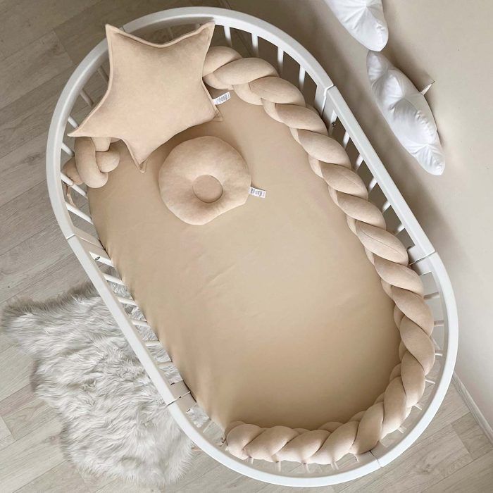 Κομψή, απαλή, ευχάριστη στην αφή προστασία, δεν περιορίζει την ροι του αέρα στην κούνια, άνετη, δεν καταλαμβάνει πολύ χώρο. Κατάλληλο για ορθογώνια, οβάλ και στρογγυλά κρεβάτια. Πριν γεννηθεί το μωρό, μπορεί να χρησιμοποιηθεί ως άνετο μαξιλάρι για μια έγκυο μητέρα.
