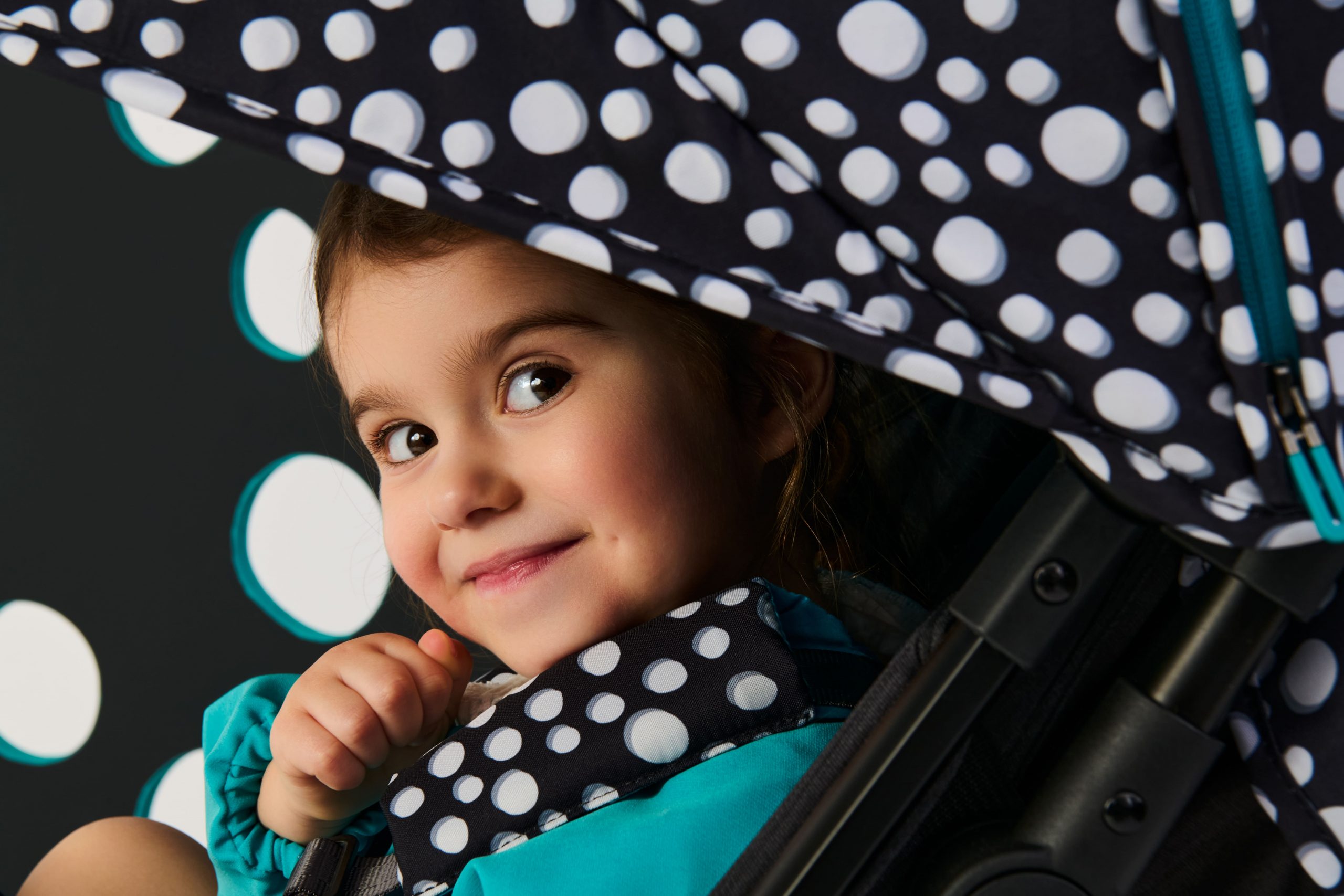 • Επεκτεινόμενη κουκούλα με επεξεργασμένο ύφασμα για την προστασία από την ηλιακή ακτινοβολία UV (UPF 50+)