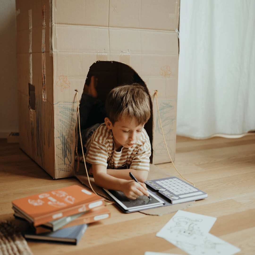 Το παιδί μαθαίνει να σχεδιάζει, να χρωματίζει και να αφηγείται ιστορίες.