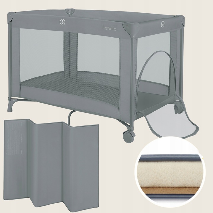 Lionelo Amelie πτυσσόμενο παρκοκρέβατο, ελαφρύ, με μαλακό στρώμα και τσάντα μεταφοράς.