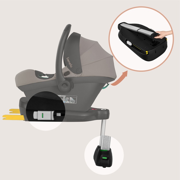 Η βάση επιτρέπει στο κάθισμα αυτοκινήτου να παραμένει προσαρτημένο ανά πάσα στιγμή, έτσι ώστε ο γονέας να μπορεί εύκολα να βγάλει το κάθισμα και να το αφήσει – χωρίς να χρειάζεται να το επανατοποθετεί κάθε φορά. Απλώς ξεκουμπώστε τον φορέα και τοποθετήστε τον ξανά στη βάση πριν από το επόμενο ταξίδι σας.