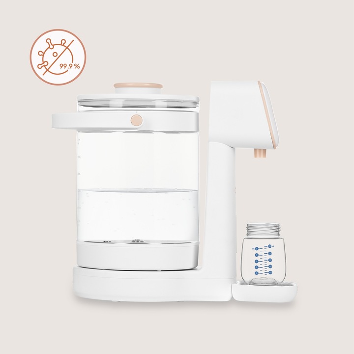 Κατά την προετοιμασία γάλακτος, η ποιότητα του νερού είναι ιδιαίτερα σημαντική. Η λάμπα UV ροής απομακρύνει βακτήρια και μύκητες κατά τη λειτουργία της συσκευής, ώστε να μη χρειάζεστε επιπλέον φίλτρα ή ξεχωριστό βράσιμο. Έτσι, χρησιμοποιείτε νερό κατάλληλα προετοιμασμένο για καθημερινή χρήση. Μια πρακτική λύση που απλοποιεί την καθημερινότητα με το μωρό.