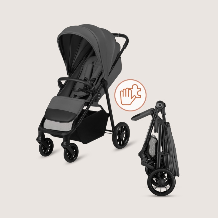Το καρότσι διπλώνει εύκολα με το ένα χέρι, ενώ κρατάτε το μωρό στο άλλο. Το χαμηλό βάρος και το συμπαγές μέγεθος όταν είναι διπλωμένο διευκολύνουν τη μεταφορά, ώστε να το παίρνετε άνετα μαζί σας στην πόλη ή να το αποθηκεύετε στο πορτμπαγκάζ του αυτοκινήτου.