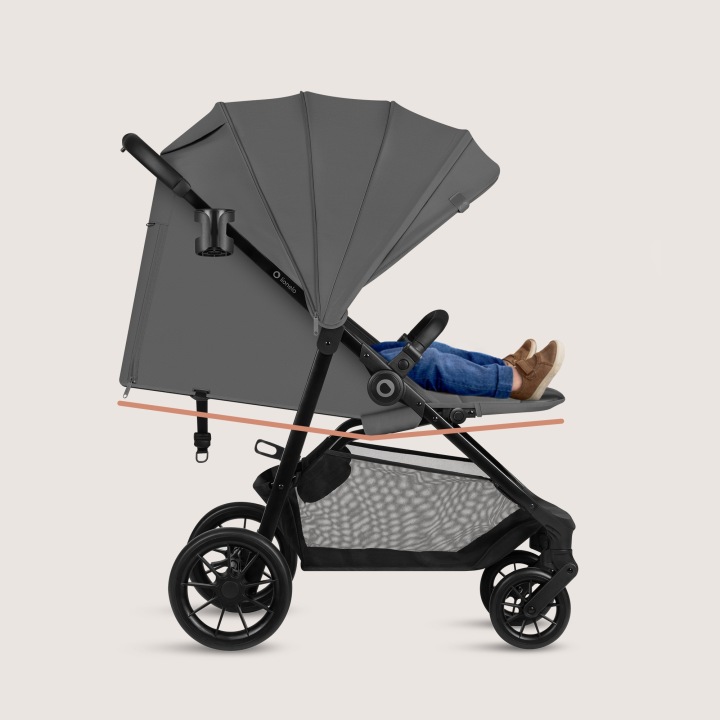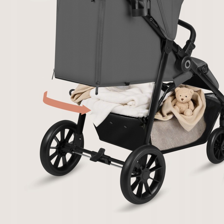 Όλα όσα χρειάζεστε στη βόλτα τα έχετε πάντα κοντά σας. Το ευρύχωρο καλάθι με εύκολη πρόσβαση χωρά αξεσουάρ, πάνες, αλλαξιές ρούχων και μπορεί να χρησιμοποιηθεί και για τα ψώνια σας. Ακόμη και όταν η πλάτη είναι πλήρως ξαπλωμένη, μπορείτε να φτάσετε εύκολα στο εσωτερικό του.