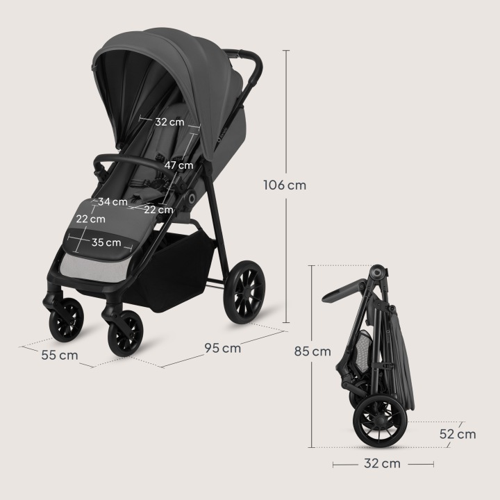 Η αναδίπλωση με ένα χέρι και το χαμηλό βάρος κάνουν το καρότσι ιδανικό για γρήγορες μετακινήσεις και ταξίδια. Το ευρύχωρο καλάθι αποθήκευσης προσφέρει εύκολη πρόσβαση ακόμη και όταν η πλάτη είναι πλήρως ξαπλωμένη, καλύπτοντας όλες τις ανάγκες της καθημερινότητας.