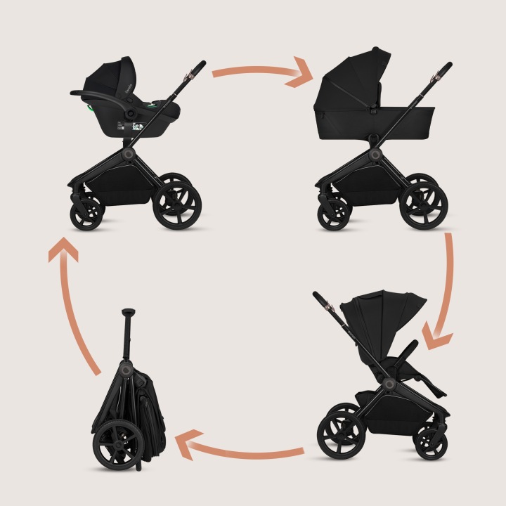 Χάρη στους αντάπτορες, μπορείτε εύκολα να τοποθετήσετε το κάθισμα πάνω στον σκελετό του καροτσιού, μετατρέποντάς το σε ένα πρακτικό και λειτουργικό σύστημα μετακίνησης (travel system).