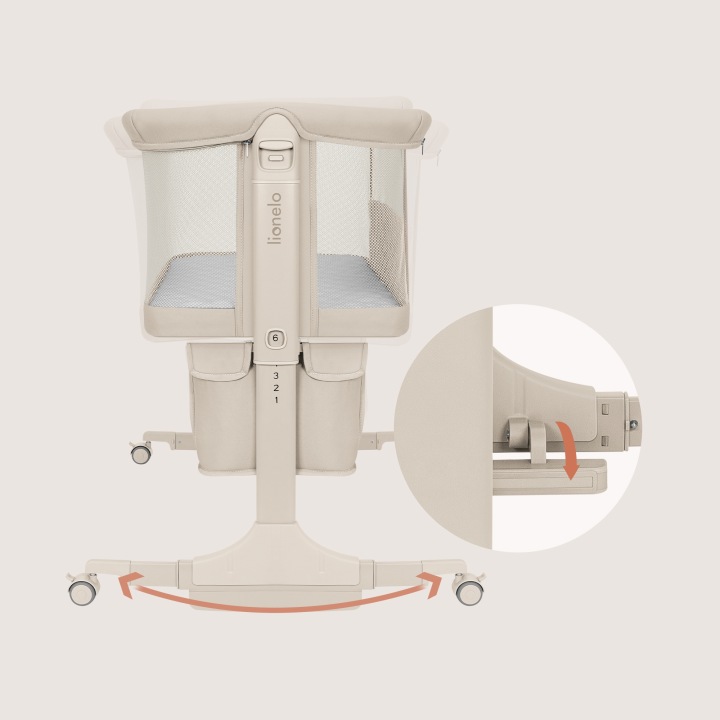 Περιστρέφετε τις βάσεις και μέσα σε λίγα δευτερόλεπτα μετατρέπετε το λίκνο σε κούνια. Χωρίς εργαλεία και χωρίς επιπλέον εξαρτήματα. Όταν πριν τον ύπνο χρειάζεται λίγη απαλή κίνηση, μπορείτε να κουνήσετε απαλά το μωρό και να το βοηθήσετε να αποκοιμηθεί πιο ήρεμα.