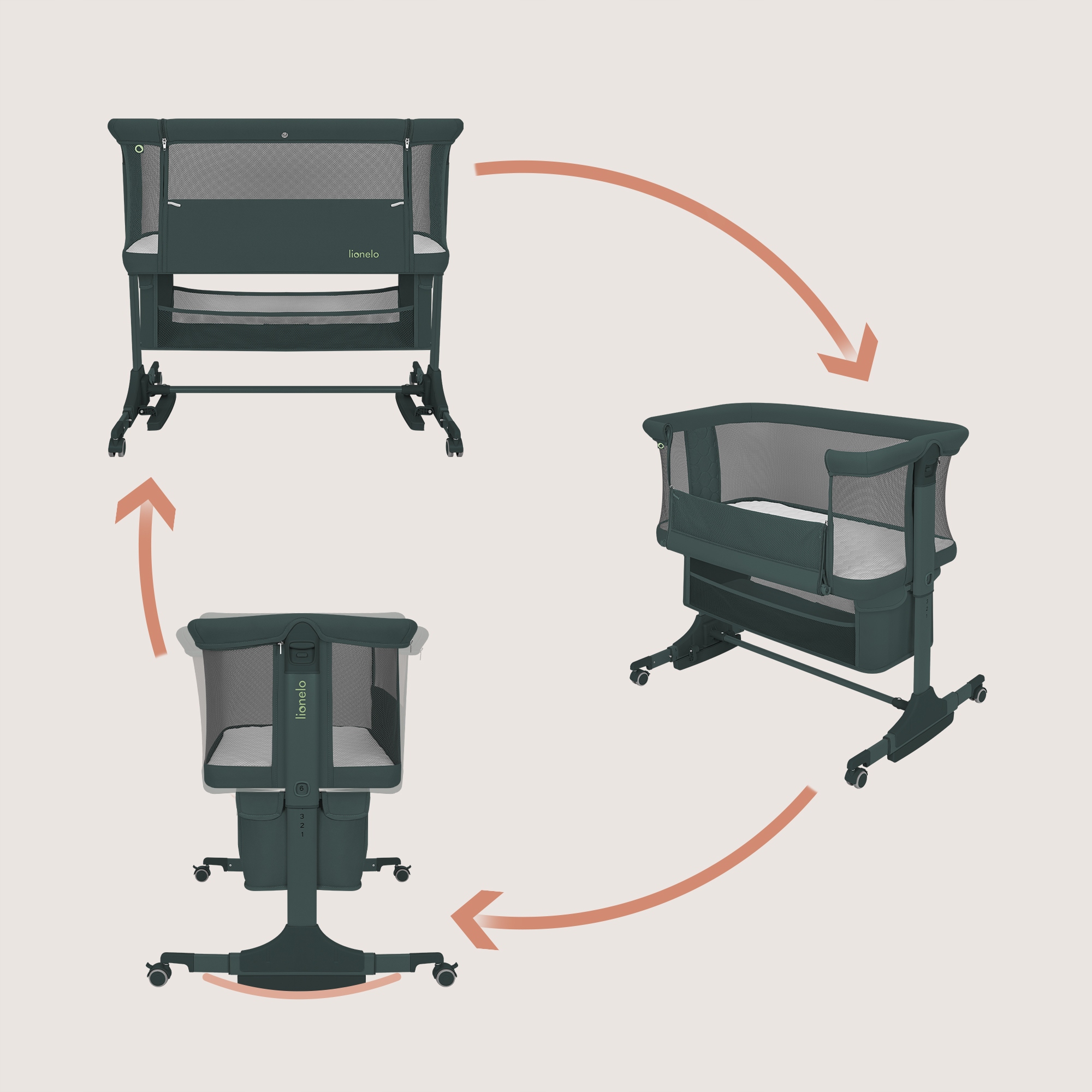Το λίκνο μπορεί να χρησιμοποιηθεί ως λίκνο συγκοίμησης, ανεξάρτητο λίκνο ή κούνια, χωρίς να χρειάζεται να αγοράσετε επιπλέον μοντέλα. Τη νύχτα μπορείτε να το τοποθετήσετε δίπλα στο κρεβάτι σας, ενώ την ημέρα να το χρησιμοποιείτε σε οποιοδήποτε σημείο του σπιτιού. Όταν το μωρό χρειάζεται ηρεμία, αλλάζετε εύκολα τη ρύθμιση και το κουνάτε απαλά. Μία πρακτική λύση που διευκολύνει την καθημερινή φροντίδα του μωρού.