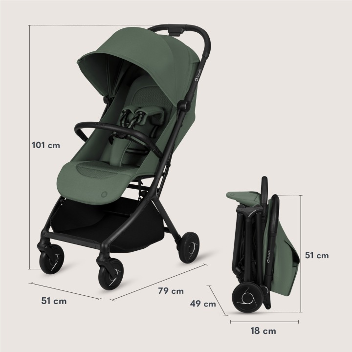 Όταν διπλώνει, εντυπωσιάζει με το υπερσυμπαγές του μέγεθος, κάνοντας τα ταξίδια με το μωρό – ανεξάρτητα από το μέσο μεταφοράς – απλά, άνετα και πρακτικά.