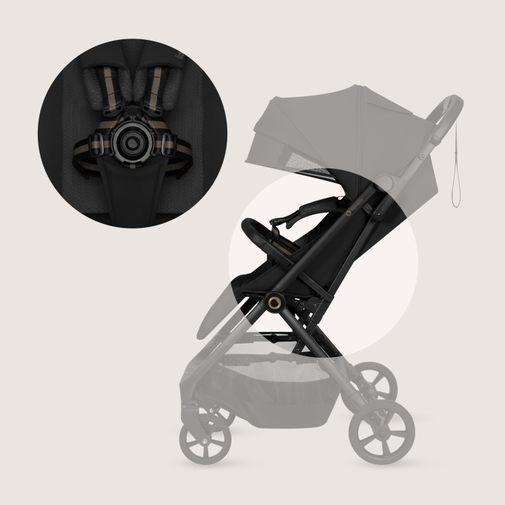 Το διαισθητικό σύστημα κουμπώματος και η ακριβής προσαρμογή των ζωνών αυξάνουν την ευκολία χρήσης, ενώ παράλληλα εξασφαλίζουν σταθερή και ασφαλή θέση για το παιδί κατά τη διάρκεια της βόλτας.