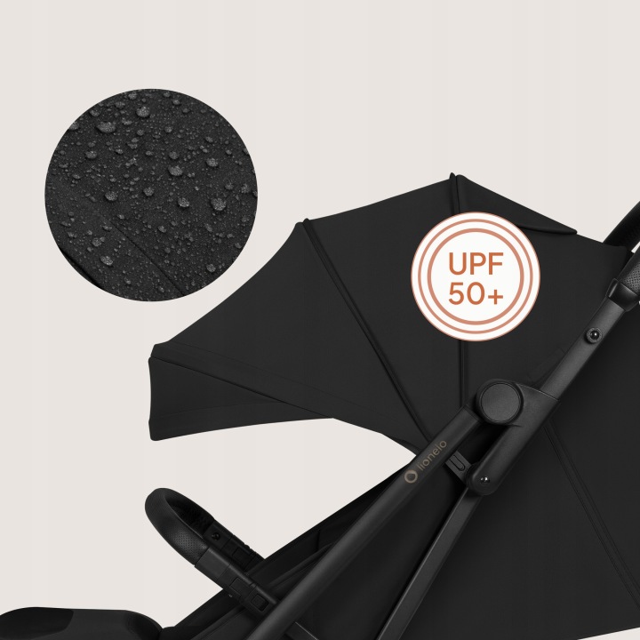 Το φίλτρο UPF50+ προστατεύει αποτελεσματικά από την υπεριώδη ακτινοβολία, ενώ το αδιάβροχο ύφασμα βοηθά να διατηρείται το εσωτερικό του καροτσιού στεγνό και προστατευμένο από την υγρασία.