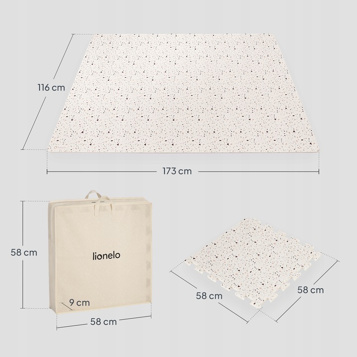 Το Lionelo Yoka εκπαιδευτικό χαλάκι αφρού είναι διπλής όψης και αποτελείται από μεγάλα κομμάτια αφρού τύπου puzzle, που δημιουργεί έναν ασφαλή και άνετο χώρο για παιχνίδι, εξερεύνηση και ανάπτυξη του παιδιού σου. ✨