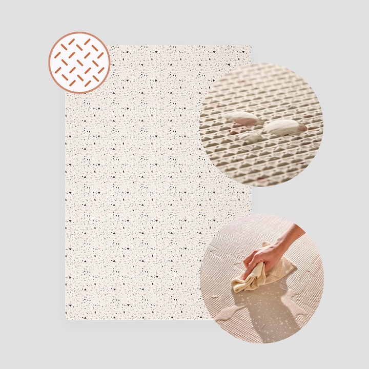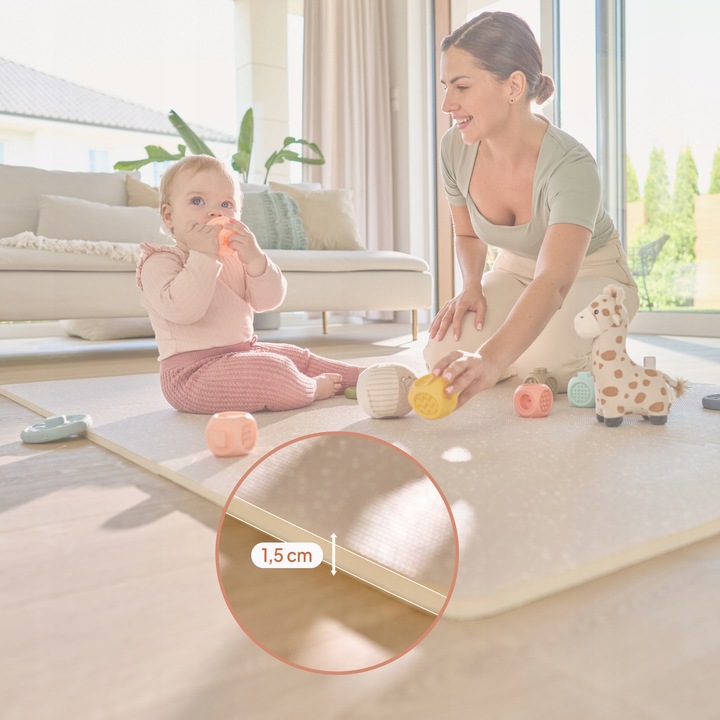 Κατασκευασμένο από ανώτερης ποιότητας αφρό XPE, προσφέρει εξαιρετική απορρόφηση κραδασμών, άνεση και θερμική προστασία τόσο για το παιδί όσο και για τον γονέα.Χάρη στο μεγάλο μέγεθός του (173 x 118 x 1,5 cm), παρέχει ιδανική επιφάνεια για παιχνίδι, μάθηση και χαλάρωση.