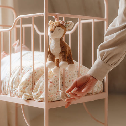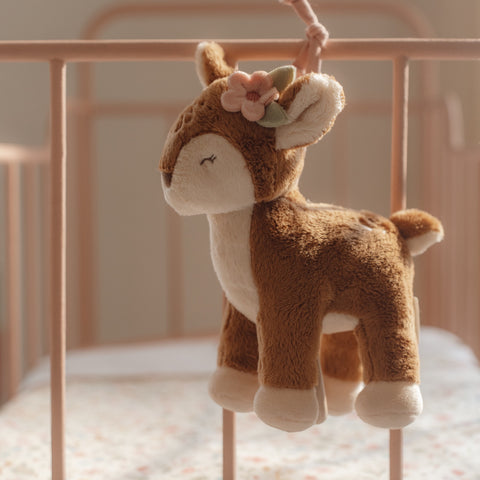Αυτό το όμορφο μουσικό ελαφάκι θα βοηθήσει το μωρό σας να ηρεμήσει και να αποκοιμηθεί. Επιπλέον, αναπτύσσει τη φαντασία του μικρού σας και διεγείρει τις αισθήσεις της όρασης και της ακοής. Τραβήξτε προς τα κάτω τον ξύλινο κρίκο και μια χαλαρωτική μελωδία θα αρχίσει να παίζει. Μπορείτε να το κρεμάσετε πάνω από οτιδήποτε, από κούνια μέχρι αλλαξιέρα.