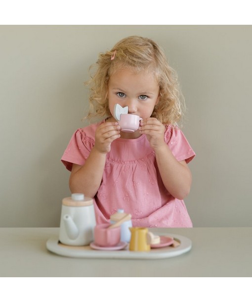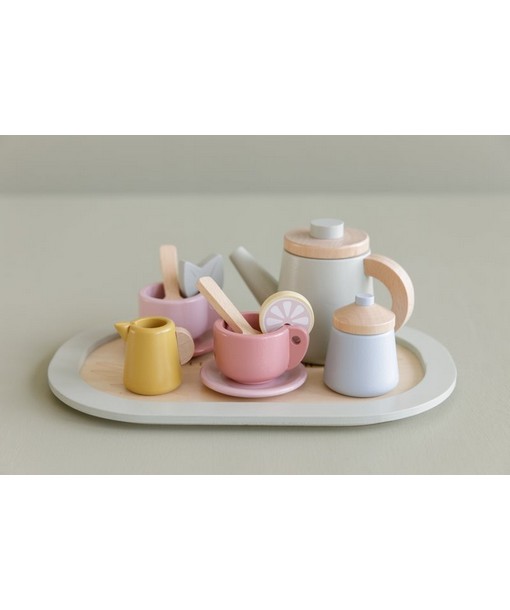 Καλέστε τους φίλους σας για ένα τσάι και παίξτε με το υπέροχο ξύλινο σετ που αποτελείται από 1 δίσκο σερβιρίσματος, 1 τσαγιέρα, 2 ποτήρια με πιατάκι,