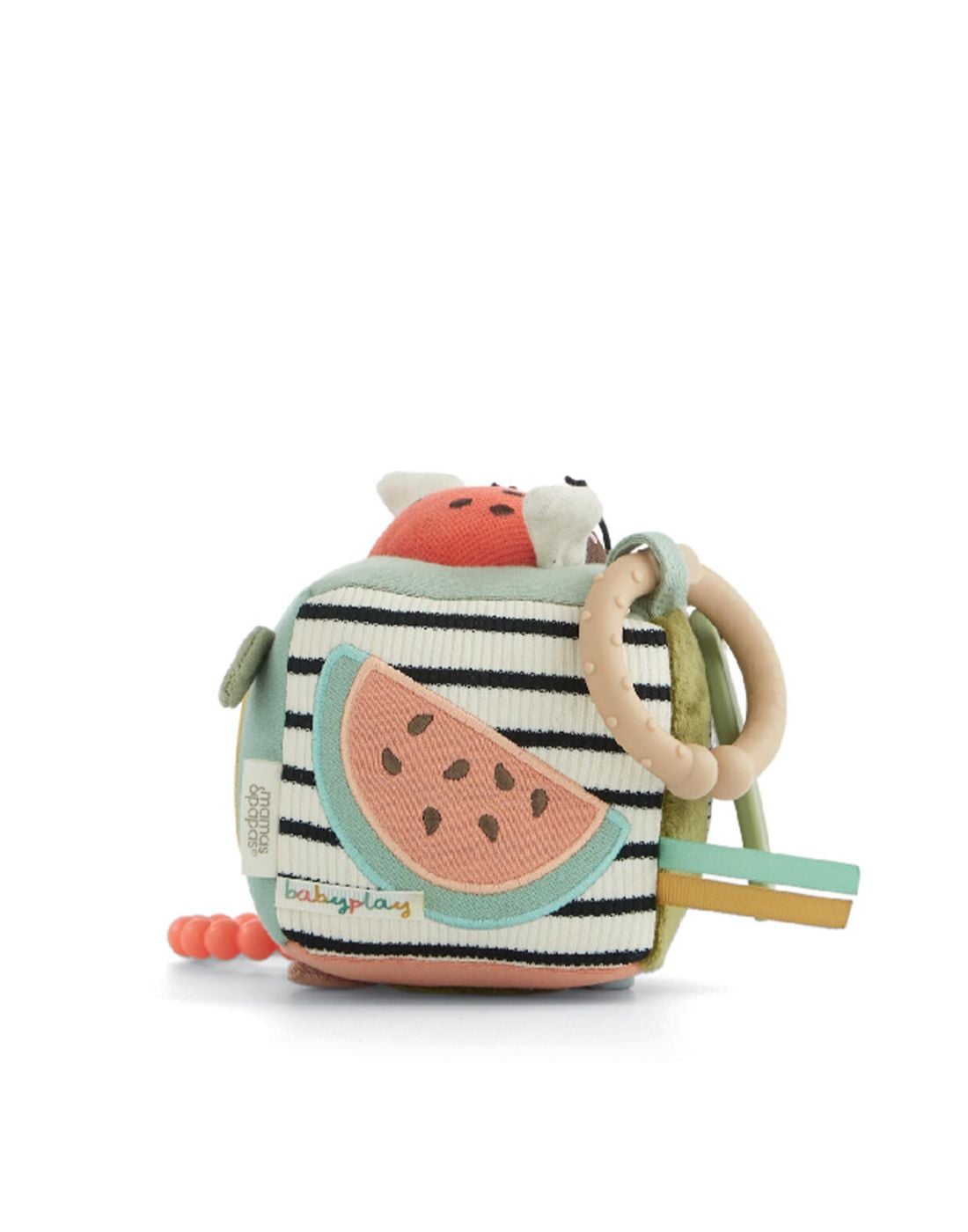 - Πολυαισθητηριακό παιχνίδι – Διαθέτει ήχους κουδουνίστρας, crinkle ήχους, 3D στοιχεία και υφασμάτινες ετικέτες, για να διεγείρει τις αισθήσεις του μωρού.Εύκολη τοποθέτηση – Ιδανικό για να το προσαρμόσετε σε καρότσι ή πορτ-μπεμπέ με το C-ring για διασκέδαση εν κινήσει.