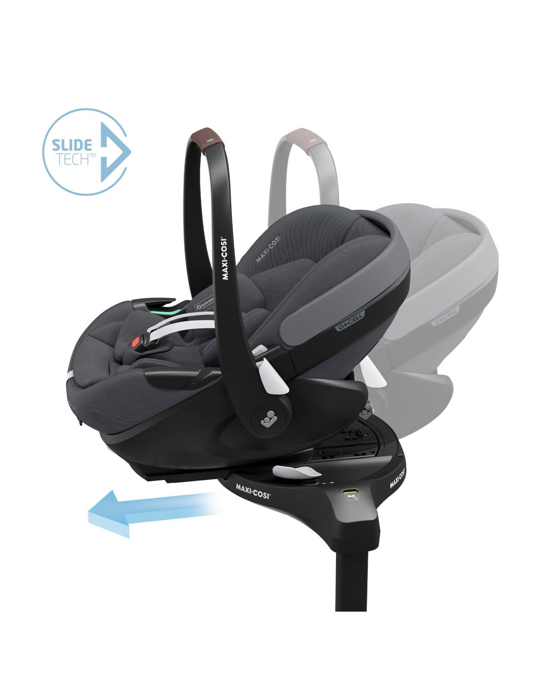 - Με τη συρόμενη βάση, το κάθισμα αυτοκινήτου Pebble 360 Pro μπορεί να περιστραφεί ομαλά και εύκολα σε οποιαδήποτε θέση ανάκλησης. Η ζώνη ”easy-in” παραμένει ανοιχτεί, επιτρέποντάς σας να τοποθετήσετε το μωρό σας στο κάθισμα με ευκολία