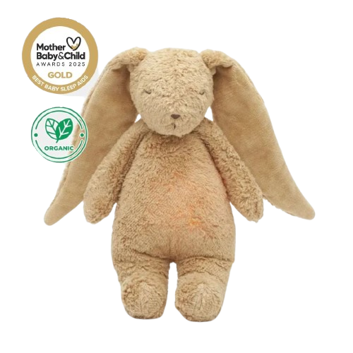 Moonie 2.0: Επαναφορτιζόμενο βοήθημα ύπνου με ηχογράφηση & αισθητήρα κλάματος – Οργανικό βαμβάκι Cappuccino Bunny