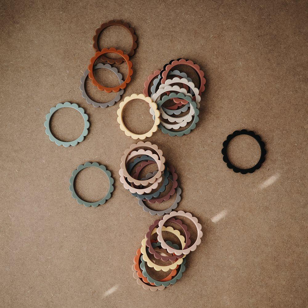 Αυτά τα όμορφα βραχιόλια μπορούν να χρησιμοποιηθούν τόσο από τη μαμά, όσο και από το μωρό. Ένα σετ από τρία μασητικά κρικάκια, τα οποία μπορείτε να φορέσετε και ως αξεσουάρ και να έχετε με έναν έξυπνο τρόπο, πάντα ένα παιχνίδι διαθέσιμο κοντά σας, όταν το μωρό τα χρειάζεται για να ανακουφίσει τα ερεθισμένα ούλα του.