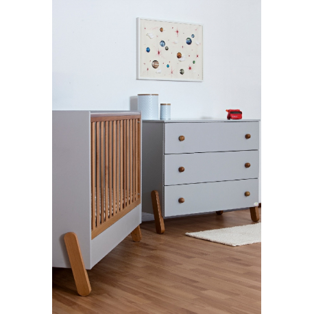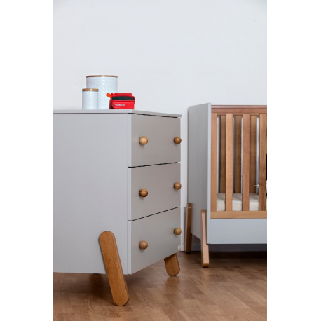 Η στυλάτη συρταριέρα Santa Bebe Flora παράγεται από μελαμίνη ανάγλυφης υφής και MDF υψηλής ποιότητας. Διαθέτει 3 ευρύχωρα συρτάρια που παρέχουν επαρκή χώρο για όλα τα πράγματα του μωρού σας. Αυτή η συρταριέρα έχει αθόρυβο πλαϊνό μηχανισμό με φρένο για μεγαλύτερη αντοχή στο βάρος και ιμάντα ασφαλείας για αποφυγή της ανατροπής του επίπλου. Επιπλέον, υπάρχει η δυνατότητα τοποθέτησης προέκτασης για τη μετατροπή της συρταριέρας σε αλλαξιέρα.