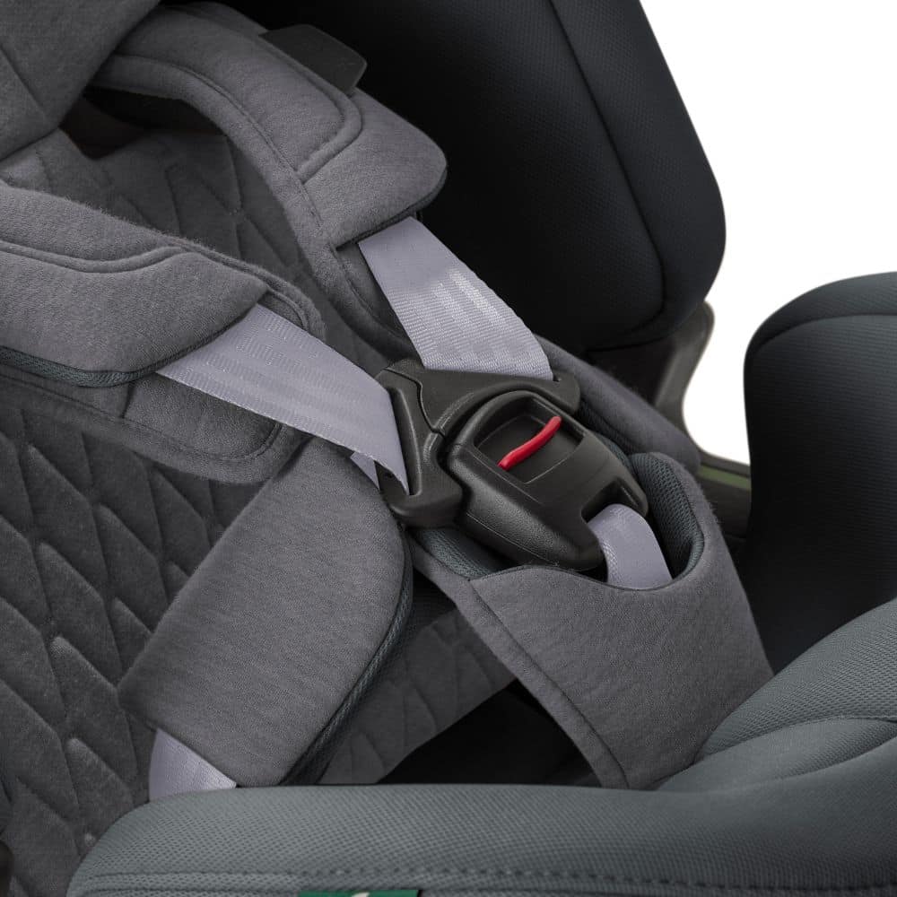 ΝΕΟ σύστημα EasyFit: Ελατήριο ασφαλείας στη ζώνη για εύκολη στερέωση του παιδιού στο κάθισμα.